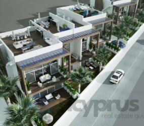 Our project expands across an area of 5 Cypriot donums (approximately 6690 m²), with four unique apartment blocks, each housing two floors and a rooftop terrace. Every Penthouse offers breathtaking sea views, thanks to our distinct cascading building architecture.