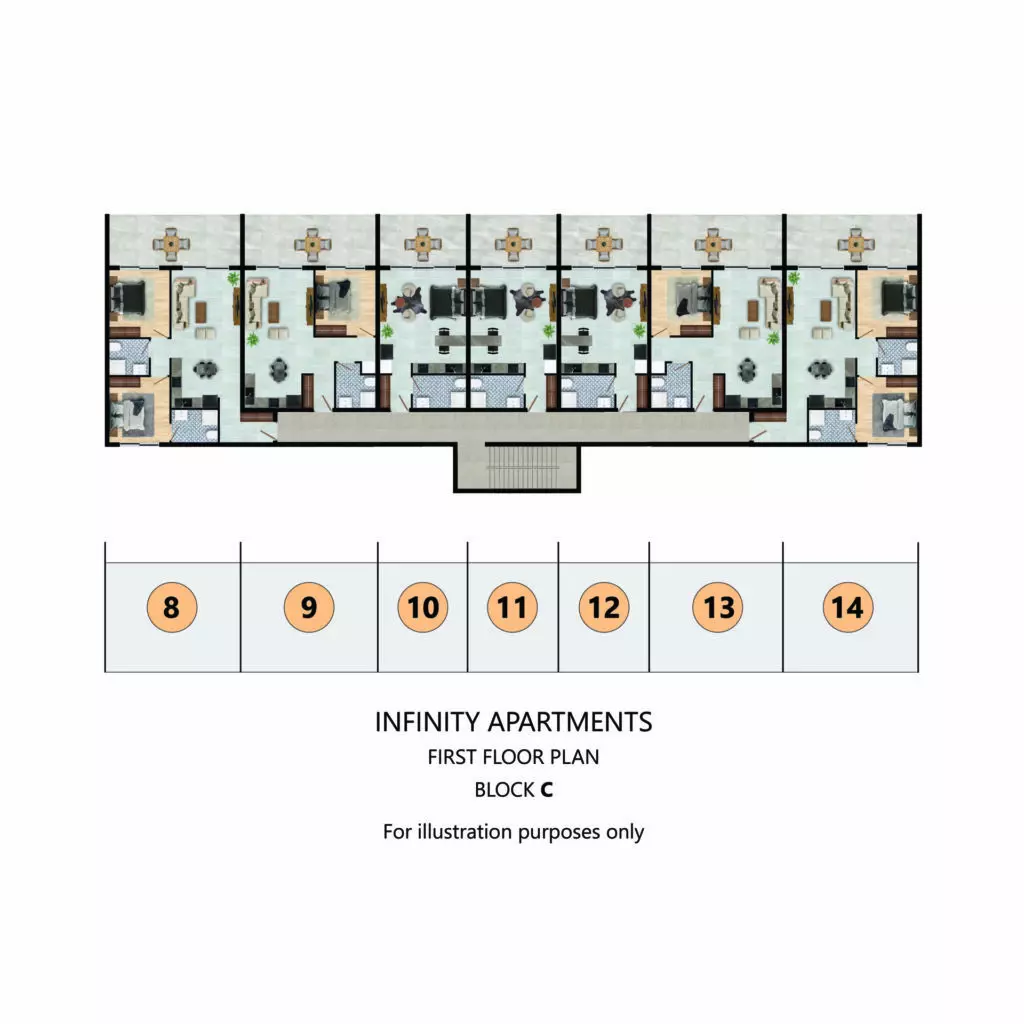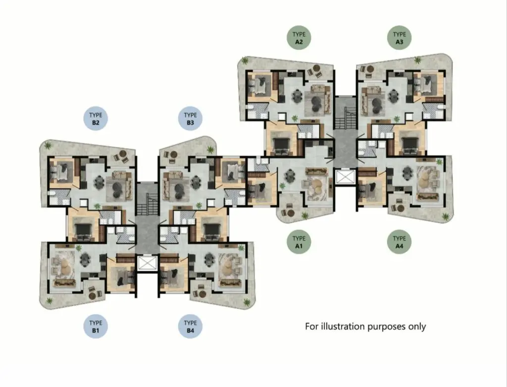 Das Projekt besteht aus drei verschiedenen Blöcken, wobei sich die Blöcke A und B auf 10 Stockwerke erstrecken. Ab der 5. Etage genießen die Bewohner von jeder Wohnung aus einen uneingeschränkten Meerblick. Dieses nach einem Business-Class-Apart-Hotel-Konzept konzipierte Anwesen verspricht eine Mischung aus Luxus und Funktionalität.