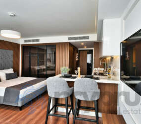 For sale is a spacious studio apartment with 43m² of living space, offering a terrace with a breathtaking sea view. This 1+0 studio provides a perfect balance of comfort and customization, allowing the new owner to design their interior to suit their personal taste. Although the apartment comes unfurnished and without appliances, it features high-quality finishes, including kitchen cabinetry and fully equipped bathroom plumbing.