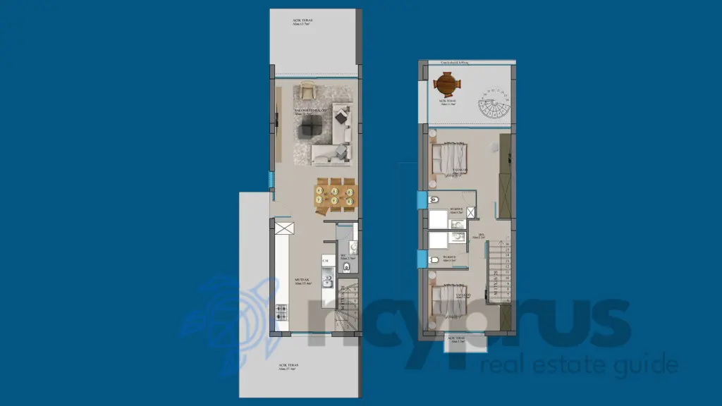 Готовая вилла 2+1 с террасой на крыше в CAROB HILL от Özeray – современный дом площадью 269 м²